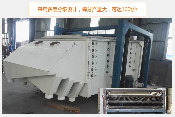 1、篩分量大,多層分級(jí)設(shè)計(jì),一機(jī)分兩組,一臺(tái)抵多臺(tái)使用,產(chǎn)量翻倍;